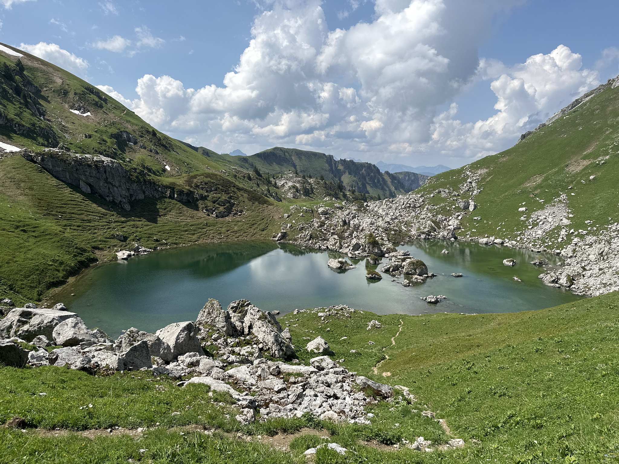 Le lac de Darbon et niché entre le Dent d’Oche et les Cornettes de Bise à 1827 mètres d'altitude. Le panorama sur les Alpes est magnifique. Cette randonnée est à éviter en temps de pluie, car la descente vers le lac devient trés glissant.
